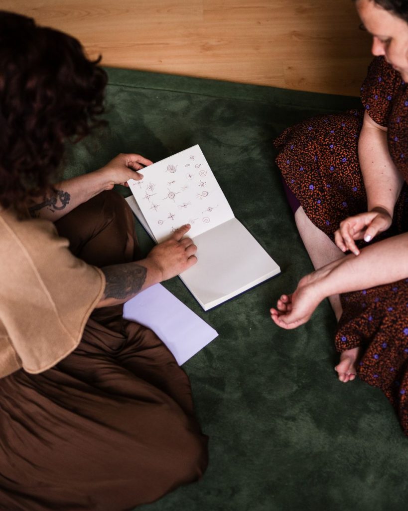 Durch die Handpoke-Methode setze ich bewusst jeden Punkt, und bringe damit achtsam deine Intention unter die Haut. Dazu nutze ich meine Fähigkeiten als Visionärin, Künstlerin und Embodiment Facilitator um dich individuell zu begleiten. Ich kreiere eine Erfahrung für dich, aus der du bestärkt und geschmückt heraus gehst- dir selbst ein Stückchen näher.